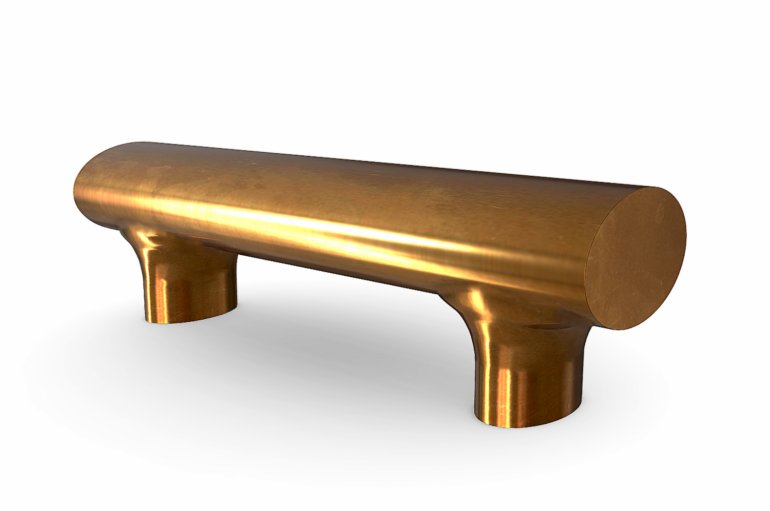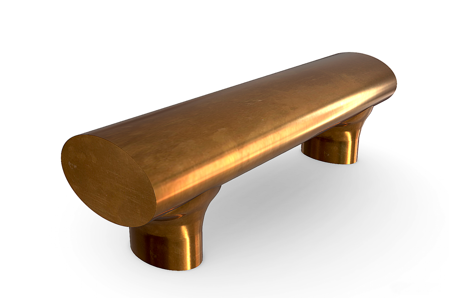 An exquisite contemporary bench with a gracefully curved top, harmoniously merging entirely into hand-hammered bronzed brass-cladded . The striking design marries elegance and boldness, creating a captivating and functional piece of furniture.